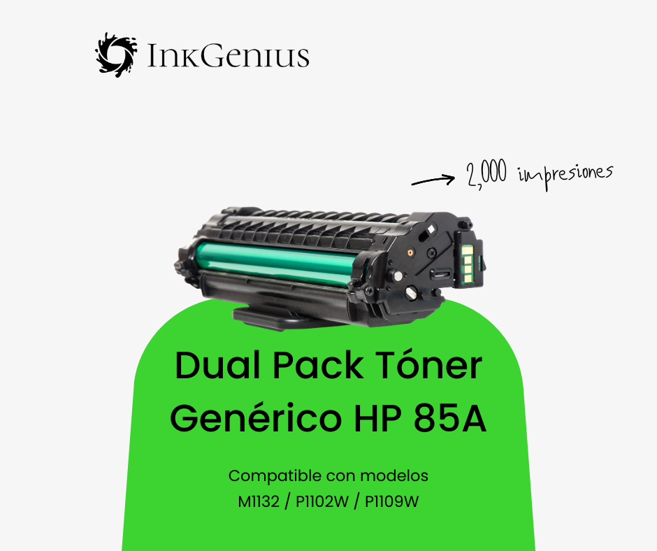 Maximiza tu impresión con este paquete de 2 tóners compatibles HP 85A, diseñados para ofrecer alta calidad y un rendimiento confiable a un precio accesible.