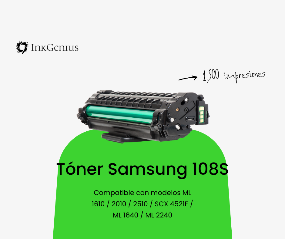 El tóner 108S es la solución ideal para usuarios de impresoras Samsung que buscan un consumible confiable, con alto rendimiento y calidad constante. Perfecto para impresiones nítidas y duraderas, ofrece hasta 1,500 páginas con una cobertura estándar del 5%.